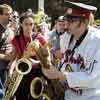 ...930 men, women and children brought their saxophones to Dundas Square and played the "Hockey Night in Canada" theme song...