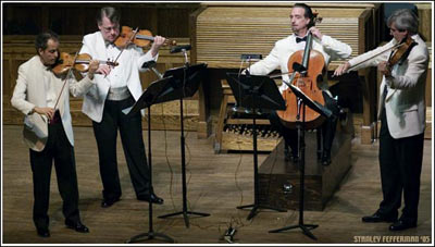 There is a particularly magical sequence in the slow third movement where the solo voice of Eugene Drucker's first violin, sounding like a bagpipe, utters a stately farewell that is developed by the ensemble as planes of sound successively receding, vanishing into the horizon, arising again from silence, and vanishing finally into an awesome void.