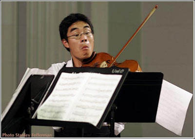 The final piece fits in with the comic bent of this day at the Ottawa Festival. The title tells it almost all: Overture to The Flying Dutchman as played at Sight by a Second-Rate Concert Orchestra at the Village Well at 7 oclock in the Morning. What else you have to know about the performance can be gleaned from the accompanying photographs of the mugging of violist Aaron Au.