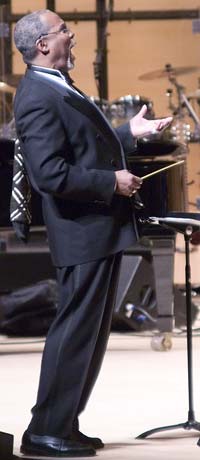 This performance of the Nguzo Saba Suite opened with Kwanza Msingwana at the back of the hall, drumming an invitation to the spirits to join us in celebration of Kwanzaa. Moya Garrison Msingwana joined the call on his drum as his father, drumming ceremoniously, walked down the aisle to the stage. After being presented to the audience and thanked by the warm and distinguished conductor Brainerd Blyden-Taylor, father and son departed, leaving the stage to Mr. Blyden-Taylor, the choir and the pianist Gregory Oh.