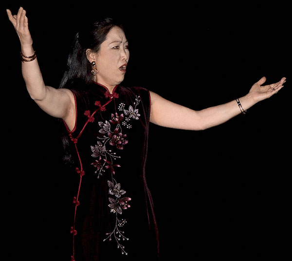 The next tune started with Qui Xia (sounds like Chu Sha) picking her pipa and Feng Jun, a highly trained and beautiful Beijing Opera performer singing in a powerful, high pitched voice, subtly modulated to produce fractionally different tones. Her ritualized gestures let you know the song is about a man strong as a mountain and a lovely maiden who meet where a stream flows clear from the mountain. Feng Jun is joined by Willy Miles, a Vancouver Opera trained performer, who gives a singing translation into English. And when the rhythm section kicks in, you could be listening to a South American Coplas, or a First Nations drum circle chanting. |