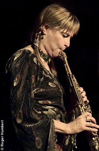 Jane Bunnett and her band come back on stage, this time with Hilario Duran on piano. The duet that Hilario Duran and Jane perform in this second set is one of the highlights of the evening for me. Lyrical, lush piano introduces the piece and briefly takes on a bluesy sound before developing into a montuno enriched with jazz harmonies. Jane comes in on soprano sax with a melodic motif. She then moves into uncharted territory with an improvisational daring all her own. She releases a complex multitude of notes and sounds, even screeches, and the rhythm drives relentlessly on. Hilario is smiling and inspiring her to greater heights. The synthesis of their playing is complete. I flash back to Steve Lacy and Danilo Perez at Harbourfront in 1998. But this is wilder, more exhilirating. We are led back to the head. Rich harmonies flow from the piano, someone shouts yes! and we return through a tinge of blue to an almost classical end. Jazz at its besta journey.