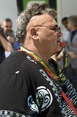 Rick Lazars Having Fun with Riddum on Friday, June 24 was the first of the Workshop series. Rick is a well-known percussionist and the leader of Samba Squad and Montuno Police. He also teaches percussion at York University and Latin ensemble at Humber College. For this workshop, he passed out plastic tubes of various colours and drumsticks to the participants. Those with red tubes were assigned one pattern to play, the purples another and so on. Everyone had great fun while learning something about what it takes to play percussion, how everyones percussion part fits together, how you must listen to where everyone elses part fits in, yet not be swayed from your own and the underlying pulse that unifies all. And we were lucky to have a young bongo player from Mexico participate and solo over our beat.