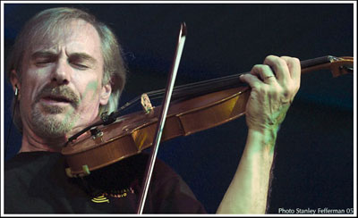 Ponty, as you can see, generates a lot of intensity. Hes tough, wiry, and full of Gallic attitude, which is three parts look at me and one part shrug if you dont. Ponty's playing is overlain with colours. It's like he knows his virtuosity will blow you away. He keeps an ear locked onto the signal of the fiddle as if its his will as much as his bow that is filling the space with volleys of sonic arrows. |