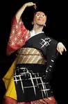 The Green Tea emphasis is on the group. With their backs turned to us, all seven dancers silently gesture 'Kampai' ('cheers' in Japanese) and raise their teacups. Their heads turn right, their right arms hold out cups. They turn clockwise to face us, their faces relaxed. The teacups are inverted and shown to be empty. Now and then a member passed through a human archway to once again rejoin the group. This is danced at a medium tempo.