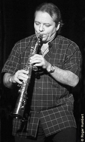 An African jazz piece, with the accent on African, takes the band through a fluid evolution of configurations and changing roles. It makes for a very interesting piece, aurally and visually. As an opener, Angel plays congas and alto simultaneously and Evaristo plays both baritone and percussion. Then the four saxophonists play with what sounds like a percussion section behind them, in reality, 'only' Francois. Three of them become singers playing imaginary drums. All wind instruments laid aside, everyone plays percussion cowbells, djembes, maracas and drums. Evaristo starts what could be a chant from past centuries as the percussion quiets and the light fades. Only the odd soft percussive accent embellishes his chanting now. And ever so gradually, the haunting sound of his voice evaporates.
