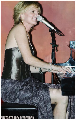 Carols idea of country is both classic and eccentric. Her concert included Hank Williams Hey Good Looking, Tammy Wynettes Stand by Your Man, and Fred Neils 1969 hit from Midnight Cowboy, Everybodys Talking at Me. Carol went from classic to eccentric by adopting into her country repertoire Lesley Gores 1963 hit Its My Party, Ill Cry if I Want To. Leading her band from the piano, Carol gave this tune a kind of swinging bluesy treatment with an outstanding beat, sang great scat and tweaked the mood of the room up till the customers were smiling, bassist Kieran Overs beamed, David Direnzo on drums was pulling crazy faces, and David Occipinti ran some mad riffs up the neck of his guitar. Carol herself sang higher and louder than usual then brought the number down on a silent space.