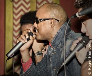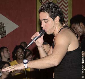 David Calzado turns to the audience and fires off a round of rapid-fire rap in machine-gun Spanish. But it doesnt hurt. Complex percussion (instead of an electronic machine beat) and the ever-present sensuality of the music run underneath. This performance is a collaborative effort. On stage and in front. There is a large contingent of Canadian Cubans in the room and when Sarita (leader of a Cuban dance troupe in Toronto), comes up on stage and drapes David Calzado in a Cuban flag it is a special moment.