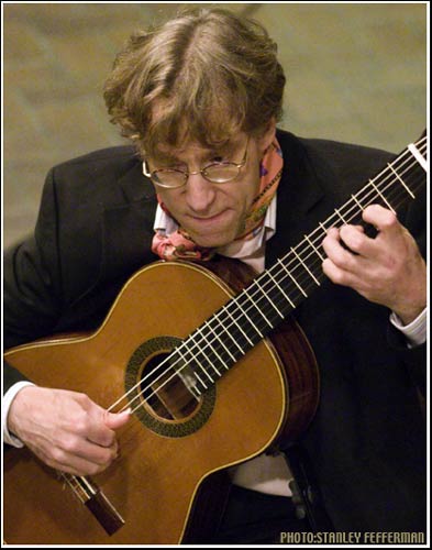 Eliot Fisk joined the ensemble for Paganinis Terzetto concertante in D major for guitar, viola, and cello. For the most part, the viola is the principal voice in this piece, except for the second movement. We had the rare opportunity to experience a virtuoso playing the guitar as a rhythm instrument, back in the shadows of the piece with the cello.