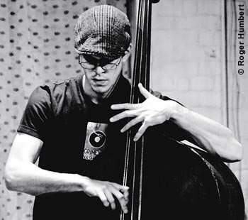 There were passages of bowed bass, sometimes soft and melancholy with suggestions of the blues, baritone blown lower and lower with abrupt rhythmic cut-offs and doubled tones and absorbing interplay between the two instruments. There were moments of modern chamber music and emergences of ever-advancing Afro rhythms. There were eruptions of triplety jazz drumming and strutting sax moments between sinuous and insolent sax lines. With electric beater attachment on mini hi-hat, Frank Rosaly proved once again that anything is a percussion instrument, used in the right way at the right time.
