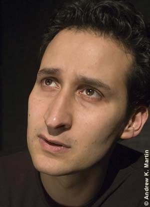 When he wasn't acting from the black-floored stage, Bhaneja leaned into and clutched at the three black brick walls. He spoke from the upstairs and downstairs exits, occasionally the steps, and even declaimed his lines from the narrow balcony at stage left.