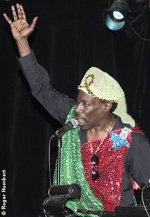 What does a Lula Lounge stage look like with thirteen Arkestra members fighting for space? Crowded, for one. Interesting thing is that no member ever let it be known that theyre short of space. If at any point, they felt their space was being intrusively stepped on, they would simply start a procession back and forth across the Lula omniverse. Arkestra is well known for its tight brass section and a tight horn section. On saxophones, we were welcomed by Charles Davis, Noel Scott, Rey Scott and Yahya Abdul-Majid, while on trumpets we had Michael Ray and Fred Adams. I could swear I only saw one trombone player; question remains: was it Tyrone Hill or Gene Davis? (My mistake is I never bothered to ask.) Guitarist D. Hotep and bassist Juini Booth filled their roles well. Percussionists Art Jenkins and Elson Nascimento were all fire and brimstone, while the role of Luquman Ali as the Arkestras drummer, I felt was rather relegated to the background. Of course, the whole band was led by the very experienced, senior Arkestra member, saxophonist / flautist Marshall Allen.