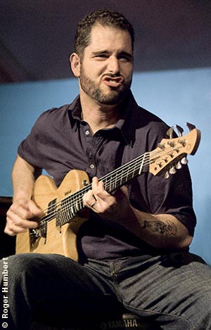Charlie Hunter is un-to-himself. Between his fascinating facial expressions and his guitar playing your attention is divided. There are very few like him and while he straddles many musical genres the improvisation is the key to his stuff. The songs blend together into one long composition.