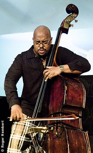 As McBride walks on stage he gives DJ Logic a pat of encouragement. The sax player is harnessed up and we are all ready to take off. In a Mingus-esque style McBride fondles his bass like a sculptor creating a masterpiece. Blake blasts off on a couple of songs, playing with abandon.