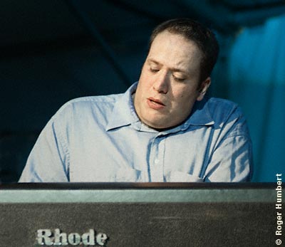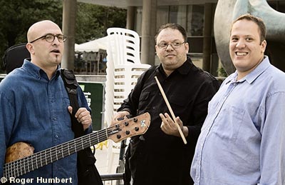 With a transitional tune featuring Robi on Rhodes piano and an infusion of orchestral colour, we made a seamless transition to Robis other, perhaps surprising musical home funk. Gradually it emerged that we were to have the theme and changes from Summertime. Frank Botos incorporated neatly the funk snare that he found on the festival drum kit to lay down a solid groove over which Robi, straddling acoustic and Rhodes pianos, again created the illusion of a larger ensemble with rich musical textures. From somewhere, another found instrument an orchestral triangle emerged to mark accents. At all times the trio maintained close eye contact and we can only guess at the degree of instant invention that we were witnessing. Neatly done and with musical casualness and taste.
