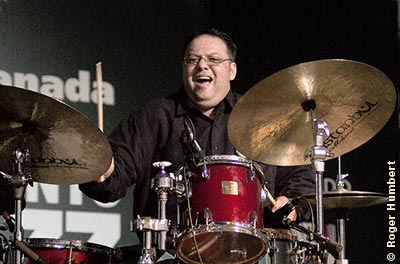 The final tune of the set was a number that had both brothers in a playful percussive battle; Frank Botos was rhythmically copying Robi Botos who was playing intricate patterns. The song ended with the crowd wanting more. The Robi Botos Trio had performed for an hour. The Botos Brothers CD was available at stage left. Molly Johnson was up next, a 15-minute break for the audience to grab a beer or a CD. |