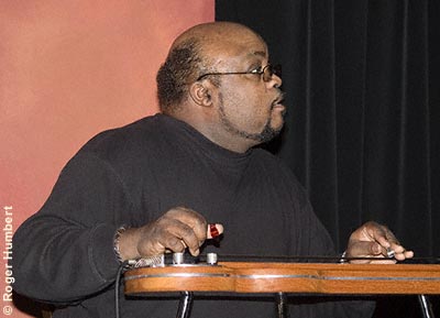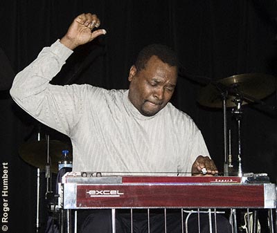 Ken Whiteleys musical co-revellers for this afternoon were Ben Whiteley on bass, Bucky Berger on drums, vocalist David Wall and the Campbell Brothers from Rochester, N.Y., or rather, some of their members pedal steel guitarist Chuck Campbell and his brother Darick Campbell on lap steel guitar and cousin Denise Brown on vocals. It was one rousing afternoon of rock your soul gospel that had the audience clapping, waving their hands in the air and singing. The room was considerably warmer at the end of the almost two and a half hour show (with no intermission) than it had been at the beginning. |