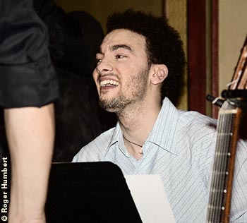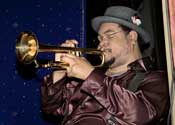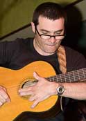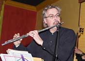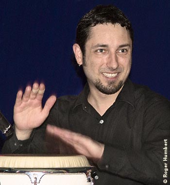 The pieces played were taken from the repertoire of all of the bands represented, The first set started with First Stop from Proyecto Charanguero featuring the pure sound and faultless rhythm of Bill McBirnies flute and Bennie Esguerra on violin. Bennie would later amaze us with his bongo technique but for this tune, it was Alex Godinez whose fleet hands beat the skins. Juan Carlos Cardenas was next in the spotlight as he sang a piece from Cachés repertoire and the trombones (Jamie Stager and Yankar Gonzalez) joined the band. Wilson Acevedo, also from Caché took his voice front and center next. Diego Marulanda, leader of Pacande ran the show for the next three tunes with his guitar technique and sometimes his voice. I say sometimes because Luisito Orbegoso sang lead on one of the songs. The trumpets were in by now and everyone was going strong, congas, guiro, maracas, bongos, piano. Luis Mario Ochoa of Cimarron sang the last piece, leaving us hoping for more in the second set.