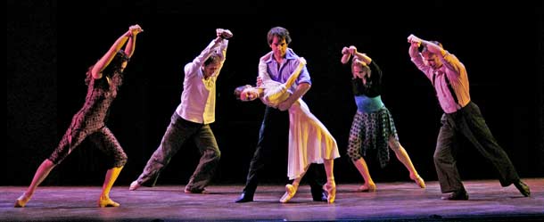 The second act of Song & Dance loosely follows the sparse plot from Act One, and features the amazing Rex Harrington and Evelyn Hart, as well as an incredibly talented supporting cast of six dancers; Jessica Dawson, Ryan Foley, Mikeal Knight, Eric Robertson, Kimberly ONeil and Julia Juhas. Individually, they were thrilling seamlessly floating between the disciplines of tap, modern, jazz and ballet. The entire cast has incredible chemistry with one another, and the original choreography is still effective. Harrington and Hart are a dream team his sensuality and almost feral command of the stage is a perfect pairing with the elfin, lithe and deeply beautiful Evelyn Hart.