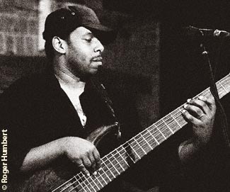 The opening number reminded me of Yesterday Princess, from Stanley Clarke's self-titled debut album, a song with a beautiful melody played only on bass. Rich Brown has an interesting style of playing. He uses his fingers, no pick. Resting his thumb on the B string, he will strum or slap the string to create a sustained sound while he shows excellent dexterity with his index, middle and baby fingers, firing off triplets and sextuplets. The left hand will pop and slide on the strings, creating other effects of tremolo and echo. The drummer, in a pastoral style, accentuates the melody on the cymbals. The piano glides into the song with full sounding choppy chords; a funky pattern develops between the piano, drums and bass and builds to an introduction of the altoist. The alto saxophone plays against the groove and pushes the song in another direction with fluid, lightning-fast runs and syncopated howling chords. A divergence of musicality, something that could easily come apart as all members of the band go their own way, the drummer in a manner of tradition is the core and has maintained the path that the players converge upon. They once again join forces; they are all completely in tune and at one with each other. They know where they have gone and where they are going. It is a joy to watch the composition take shape, to watch the joy that the players have in the accomplishment of pulling it off.