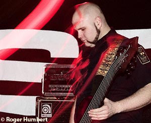 The second tune led off with a prog-funk volley that had the crowd buzzing, into the first sequence of the bands signature rocktronica sound in which guitar reverb was brilliantly employed as a house-music kind of effect; along the lines of Kraftwerk or more recently Daft Punk. Mike MacDougalls 7-string bass was unfortunately lost in the mix for the most part, but now and again shone through; he bears a striking resemblance, both physically and in playing persona, to Pocket Dwellers bass ace Gord Jupiter Shields.