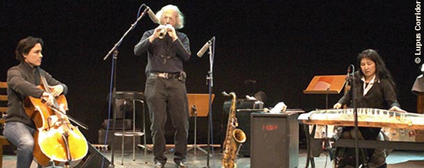 Cellist Peggy Lee was incredible, at times imitating the koto, bowing the strings in a percussive manner, slapping the strings with the bow or just wildly and innovatively playing classic cello. Lee produces warm, passionate sounds that create a wonderful glowing backdrop over which saxophonist Ochs and kotoist Masaoka intermix their varied melodies and patterns.
