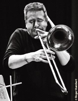Having recorded one CD three years back (Desert Songs and Other Landscapes) and preparing to record their second one, the quartets sound was fresh and confident. Along with the two leader/composers trombonist Steve Swell and clarinetist / saxophonist Gebhard Ullmann the quartet also features bassist Hilliard Greene and percussionist Barry Altschul. Starting off the night with a subtle variation of duo head-to-head, where Swell blew exhausting lung-busting breaths into his trombone that were barely audible, while Ullmann effectively pumped out deep but quiet motifs from his bass clarinet. While Swell manipulated his trombone and pushed the slider as far out as it would go, you could hear the spittle bursting from his mouth. Put together with Ullmanns ferociously underplayed clarinet, the sound was an ecstatic way to start what would turn out to be a great concert.