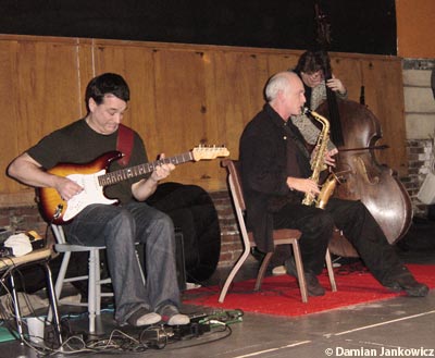 They had passed through town five years ago and as usual, I had missed them. This time I was determined to fix the error of my ways. Saxophonist Frode Gjerstad would not be back in our neck of the woods any time soon. On a rather warm December night, I came across a new venue called The Citadel. During the day, it serves the function of a dance studio. While downstairs, alcohol was served and on the way up to the room, audience members were forced to take off their shoes (any wonder socks were sold perfect timing for those who didnt have ideas for gifts under the tree). The room itself is large enough to seat (on the floor regrettably, only a few benches were provided) about 100 to 150 people comfortably. While the ceiling and walls could use some fixing, the aura of the room is ideal for the sort of music Gjerstad and his trio would play that night. |