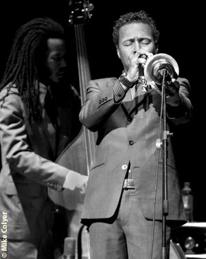 We were treated to Hargrove on open trumpet for most of the show; on one tune he played flugelhorn. Hargrove on open trumpet is dazzling, he creates breaks that are exciting, his tone is wonderful and he utilizes dynamics to great effect. He will take his solos to a climax by building with the use of well placed accents, beautiful sweet sounding runs, augmented by blue notes, interspersed with off sounding notes, attention catchers, followed up with a fluttering note or group of notes in the higher register. He will sustain these fluttering notes without interruption through sixteen or more bars, thus creating instant whoops of delight and abrupt applause from the audience. Not quite finished, he will continue on with some bold statement, something to do with the state of jazz no doubt, swaying from side to side, eyes closed, before departing to stage right with a slight nod of thanks for the applause he has once more deservedly created.