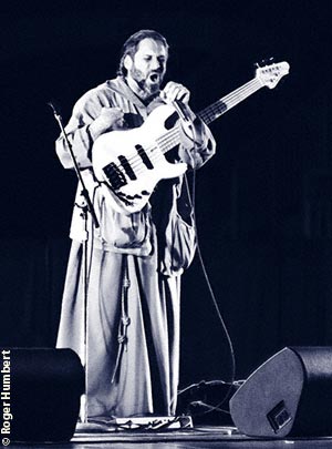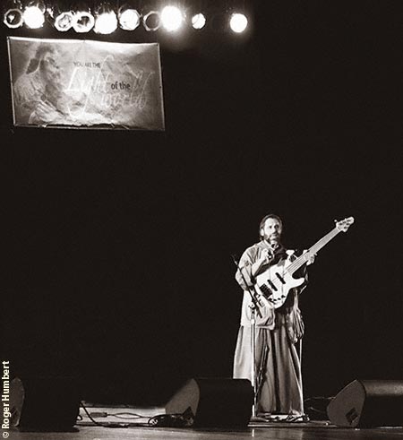 He appeared on stage, in his gray robe and flowing ponytail, following a set from an indie-rock artist named Matt Devine. He quickly tuned his bass harmonically and exhorted, Whats up Toronto?!?; his speaking voice sounds uncannily like Joe Pesci, all South Bronx right down to the youze guys. Thank you and thank God for you, he preached before introducing his first song as a prayer and launching into a sermon of the strings, a funky slap-and-pop rhythm. The combination of jazz-funk bass and such a soulful, spiritual high tenor vocal was a wonder to behold. Almost immediately, the crowd began clapping along. The first tune came to a close with a flamenco flourish.