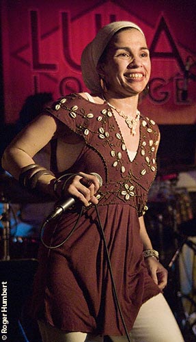 It was during the second set, when the three horns were actually audible, that the spirit of Telmary truly jumped off the stage. The whole band was grinning from ear to ear as they shape-shifted through salsa to mambo to rumba, from free jazz and funk to swing to Motown. Particularly memorable was Rastafashion breaking down into the refrain from I Just Want to Celebrate in a hip-hop vocal tempo. Towards the end, salsa singer Alberto Alberto joined her for a couple of memorable tunes, his large and gregarious presence such a complement to Telmary slight and wiry yet strong enough to channel the machismo in the right direction.