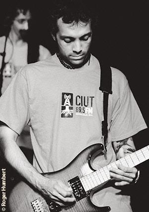 The celebration of CIUT's 20th anniversary on the air began slowly as people trickled in from the fabulous weather. The first act to grace the stage was eccodek. With their smooth flowing sounds, this is a band for winding down 'in the wee small hours of the morning' when the stragglers at the party refuse to leave your living room because they are still having a wonderful time.