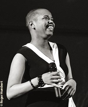 In the case of Kellylee Evans, a singer-songwriter from Ottawa, she got right down to business and told us what's in her heart, what's on her mind, and what's happening in her life as a woman, mother, and artist. In a clear and lean voice, she led us confidently through her resilient songs of love and life and heartache, 21st century style.