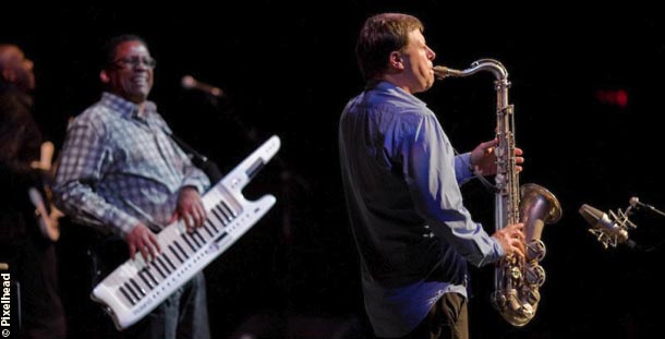 The next piece from the quartet was Stitched Up, written by Herbie Hancock and John Mayer for Possibilities. After a pop-ish beginning with vocals from bassist Nathan East, some delicious funk emerged. The program continued in a retrospective vein. There were a few more pieces from Possibilities amongst other material. There was an absorbing version of Wayne Shorters Footprints with synthesized voices, elements of soul and R&B, funk bass, hard symphonic drumming from Vinnie Colaiuta, and an inventive and lyrical solo from Chris Potter over a quieter rhythm section. About mid-show, the band left Hancock alone on stage to play a gorgeous version of Maiden Voyage on the grand piano.