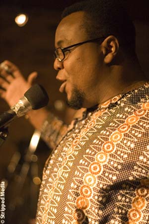And so began the second evening of a two-night recording session at Trane for these Toronto-based 2007 Best World Music Album (for their second full-length The Edge) Juno Award nominees, with their special guest Ikwunga the Afrobeat Poet. A native of The Garden City Port Harcourt, Nigeria and currently living in Baltimore, Maryland; Ikwunga had originally discovered Mr. Something Something online and reached out in advance of a conference he was attending several years ago here in Toronto. Now, he was in town for their first true recording collaboration. With his deep and mellifluous bass, Ikwunga combines the timeless African storytelling and potent political protest traditions of Fela Kuti and other Afrobeat bandleaders, with the reggae-influenced stylings of Caribbean poets such as Mutaburuka. As a tandem, Ikwunga and Mr. Something Something lead singer Johan Hultqvist had a 'high-low' dynamic that was unlike Afrobeat vocalizing I have yet heard.