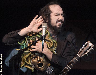 Donning masks and costumes from Minotaur to Medusa to Army Redcoat, Capossela held our attention with a variety of musical styles and moods from the teasing fun of the tragi-comic Medusa Cha Cha Cha to the ever-accelerating circus-flavoured music of Maraja with its rock n roll break to the blues/cabaret/French film noir Slide Away, Go Away. On a more serious and very surprising note was Caposselas recital in Italian of a few lines from his book dedicated to Canadian pianist Glenn Gould and their recital in English from a translator. Capossela was enthralled with the idea of being in the city in which Glenn Gould was born and lived.