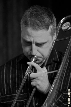 But first of all, I did find that Steve Whitehouse's alto was appropriately active and darting amidst the drums' flutter and the high sustained notes of the guitar and trombone stylistically speaking.
