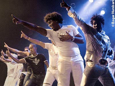David, the maestro, came on stage to loud applause, that he seemed to ignore, as he strutted the stage singing into his mike every once in a while. The focus was on the five front men as David seemed to direct the band and point out the odd dance faux pas.