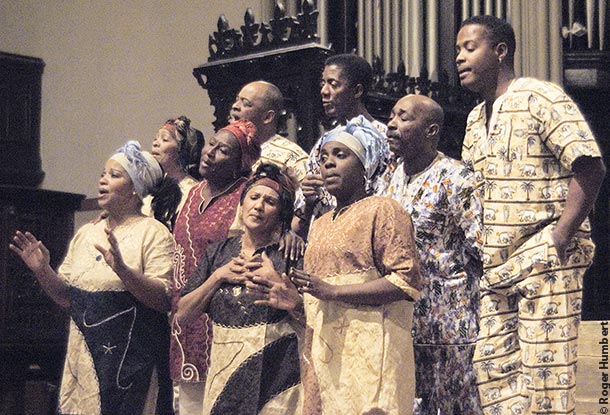 Frozen audience members trickled into the Church of the Holy Trinity in layers of winter fuzz, to sit hushed in the vaulted church while the green room filled with sound and heat, as the lightly and colourfully clad choristers warmed up their tropical pipes. The division didnt last, of course. By the end of the first number, the audience was as warmed up as the performers were, and every subsequent number garnered whistles and stamps.