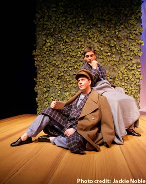 The other soldier, Will (Chris Stanton), says nothing for the longest time and stands slumped in profile at stage right, dressed in a long khaki army coat and khaki visored cap. Will's face twitches in slow spasms.