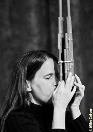 David Sait's stringed guzheng was an arpeggiated stream that intersected with the eery sliding pitch of Peebles' blown multi-reed mouth organ, the Japanese sho; together, this duo brought chamber music intimacy to the listening space.
