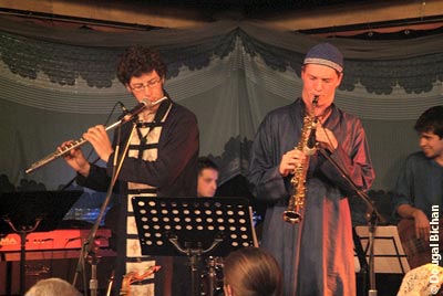Monsoon is led by tenor saxophonist and festival founder Jonathan Kay, his brother Andrew Kay and bassist/co-founder Justin Gray. I arrived about ten minutes into their set, just as tabla master Ravi Naimpally was launching into a typically virtuosic polyrhythmic solo. This blistering tempo segued into a hypnotically funky raga groove, vocally fronted by the chanting of Shantanu Bhattacharyya, whose young daughter sat a few feet away from her father at the front of the stage playing shakers. To see these veteran sages (a group that also included multi-instrumental wizard George Koller), among the bands core made up of players from my own generation, and this young child so joyously immersed in the music was to witness the essence of music as a tribal, family experience.
