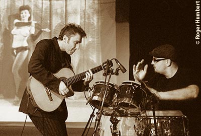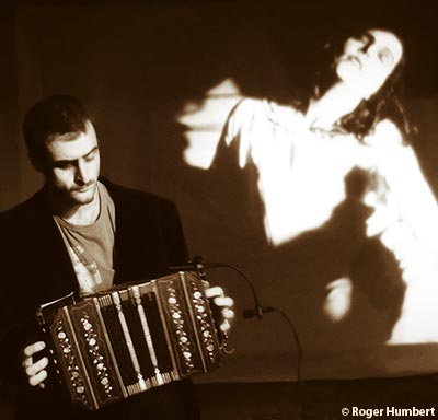 Otros Aires was a multi-media experience. Although most of the vocals were sung live in the husky baritone of Miguel Di Genova, some were the ancient black and white footage of a full tango orchestra, led by a man in a suit, sitting with his guitar in his lap and singing tales of love in a restrained but beautifully trained tenor. The footage was projected on the wall behind the players, and some of it was ever so naughty. The naughtiest featured no exposed flesh at all, just the fully clothed head and shoulders of a young woman, smiling dreamily, while gently bouncing up and down within the frame. The song lasts exactly as long as the arc of her ecstasy; ecstasy of an unrevealed provenance which was nonetheless crystal clear. The music must have been pretty sexy at the time. I cant be sure, I was distracted.