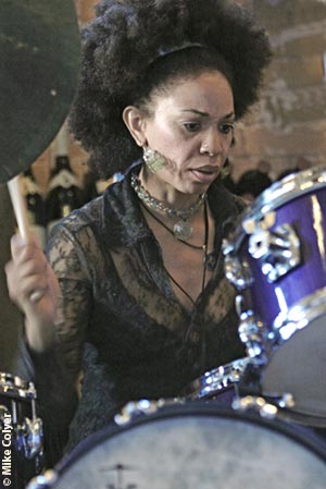 From the first beat, her commitment and pinpoint focus was total. Her swift stick work, and the range of changing textures she continually projected from her kit was astonishing, and it drew the audience right in.