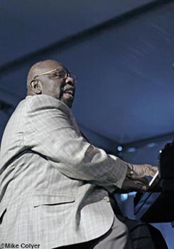Bassist Éric Lagacé and drummer Jim Doxas, Montréal natives, came onstage first and started a vamp so that the 74 year old pianist could make his entrance more effective. He acknowledged the crowd, then sat down at the Yahama piano and joined in with the band.