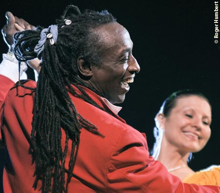 The Mambo Dream Team (Mississauga, Ontario) tended more to the Afro-Cuban-Vegas side of things with feathers and headgear but were certainly on the money in terms of execution and ability. The show put on by Duane Wrenn and Maribel Vasquez from Energetic Soul (Clawson, Michigan) was an excellent surprise, congruent with the music that we had come to hear. It opened with Duane Wrenn doing an orisha-type dance to the sound of the bata drums and chanting. With the arrival on stage of Maribel Vasquez, it moved into a playfully flirtatious guaguanco and exploded into very fast rumba/salsa/timba. Like Pedrosos music, the show remained earthy and tied to tradition but drew on the roots to create something fresh, new and exciting.