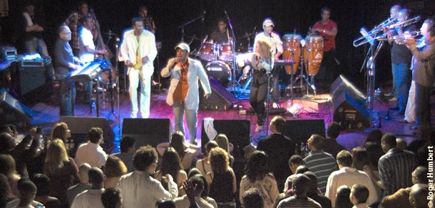 The Opera House with its ornate trim and high ceiling has been renovated to the point where it hints at a glorious past. Large white flower arrangements and candles enhanced the atmosphere on this occasion. It turned out to be a perfect venue for Pupy y los que son son, able to evoke a feel of Havana. Prefacing the concert, there were three professional dance shows. This was a wonderfully integrated and complete evening of art and entertainment.