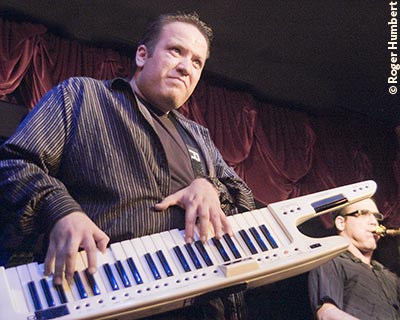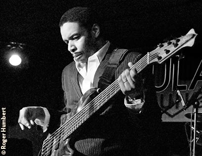 It's Rich Brown's band, and he has some of the feistiest jazz musicians around playing in it. Take Larnell Lewis if I could only describe his drumming in words! He kills me! Lewis is a very frightening drummer. He blew out of Humber College a few years ago, leaving his teachers in the dust. He plays like he invented the drums. He plays like he is possessed by some supernatural force.