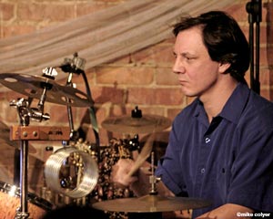 The second night of the festival started off with a traditional tabla concert. Ravi Naimpally, a master of the tablas, was accompanied by Jonathan Kay on the Harmonium (a small keyboard powered by a manually operated bellows) and Ernie Tollar on the clarinet. The universe of Indian music is new and fresh to me and I really enjoyed the performance. Kay and Tollar were very much accompanists, the majority of what they played was simply going up and down the raga or scale in unison. Naimpally was very much in the starring role. Occasionally Naimpally would grab the microphone and count out the beats or say the syllables of the rhythm. Occasionally, Kay and Tollar would break up their line, even moving into a moment of melodic counterpoint at the end of the piece. It was interesting to hear not only the layer upon layer of rhythmic figures Naimpally has mastered but also the amount of tonal variety he is able to coax from two small drums. Even in the first set in this traditional context it was obvious that Naimpally has a comprehensive understanding of many types of music. Spontaneously, he came upon a 4/6 polyrhythm, the base of much of Africa and Cubas music, and later seemed to conjure up a Brazilian Bateria with the sound of dueling surdos coming out of his larger tabla.
