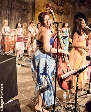 Anacaona, considered the top womens orchestra of Cuba played at the Fermenting Cellar in the Distillery District on Saturday night and again on the outdoor stage Sunday afternoon as part of the Art of Jazz Festival. They drew an audience of the curious and the enthusiastic with a large component of Cuban-Canadians and Cubanophiles. This was Anacaonas first concert in Canada. |